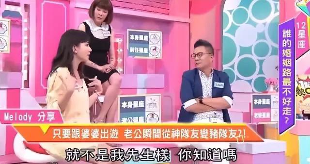 Melody曾在节目中公开吐槽老公吴育奇很爱玩,在她生第一胎的时候,老公从国外回到家,第一件事并不是照顾老婆,而是说了一句“你们都还好吧”就直接去按摩了,这让Melody气愤不已,甚至还得了产后抑郁症。Melody在怀二胎已经8个月的时候,挺着大肚子在雨中带老大看病,老公吴育奇也没有陪伴在身边。