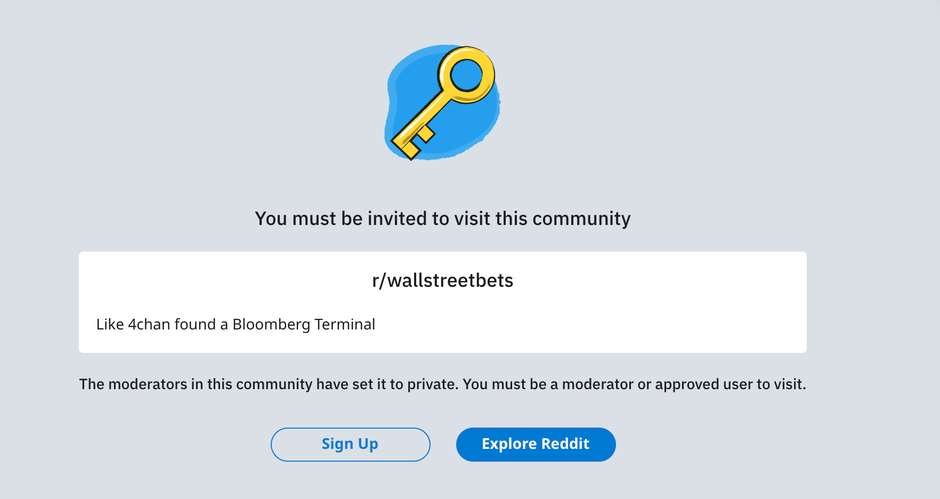 连他们的WallStreetBets,也进不去了。(版主解释为人流量拥堵,一小时后恢复正常)