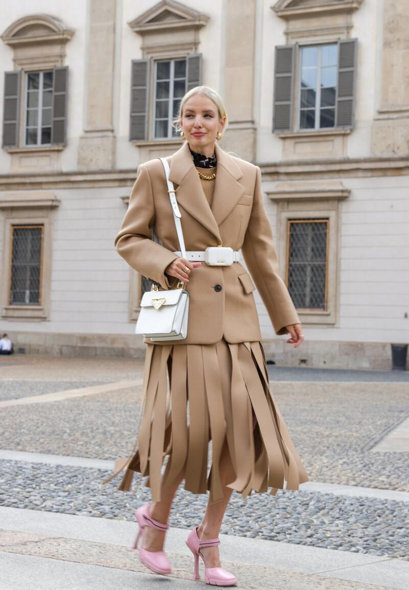 用腰包来与针织衫和半身裙进行搭配,不仅能够展现出很强的时尚感,还能够解放双手,更加方便了。