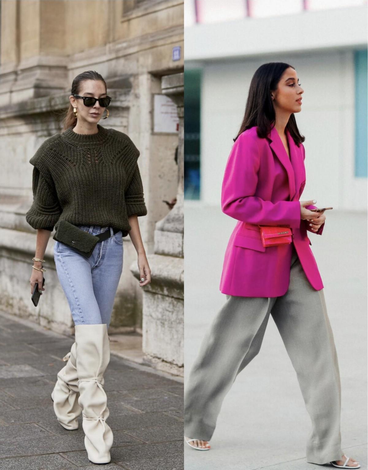 小腰包相对来说要更加时髦一点,小腰包其实装不下什么东西,所以就是作为装饰来使用,让造型更为时尚。