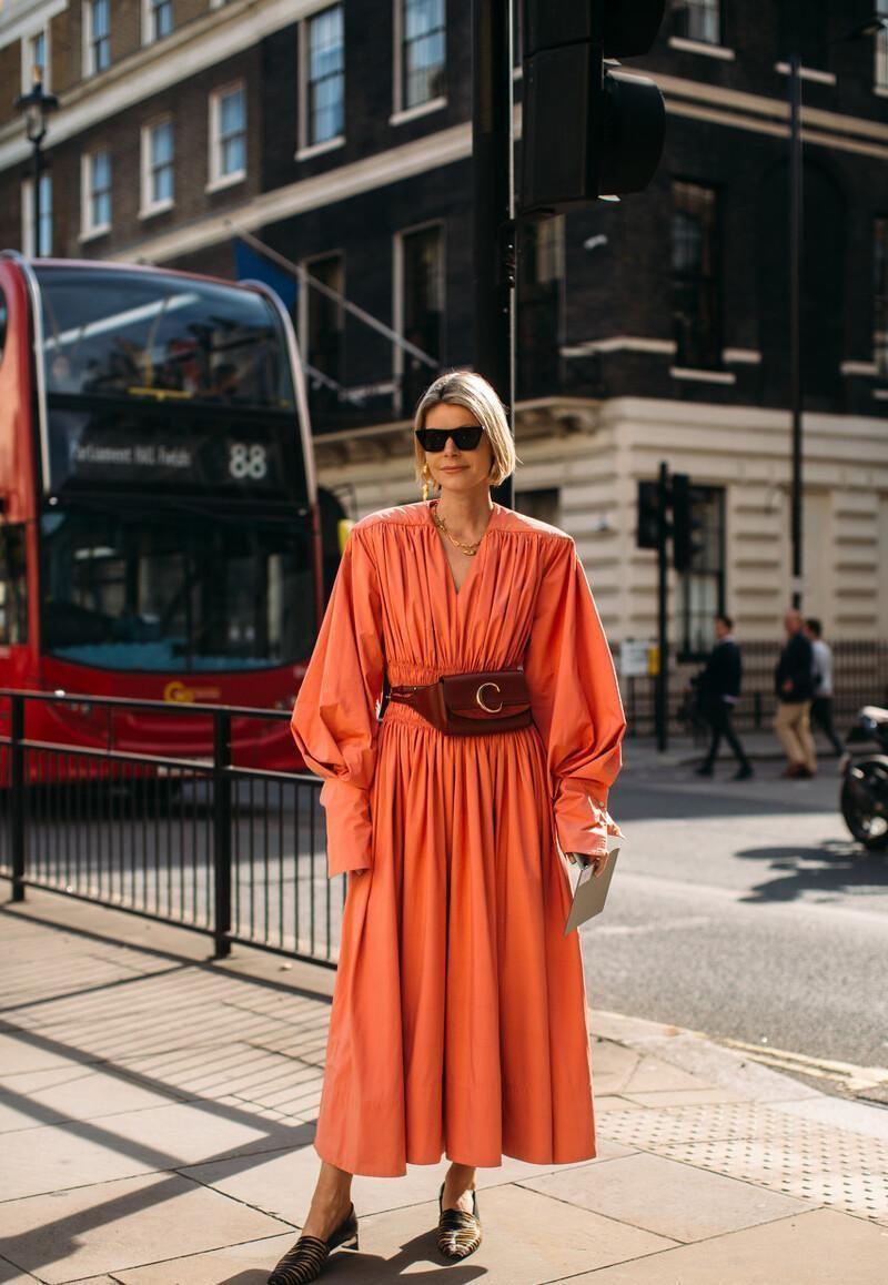 连衣裙也是可以与腰包进行搭配的,腰包的帅气中性与连衣裙的柔美结合在一起,会给人一种混搭的时尚感。